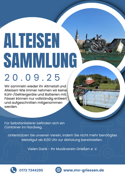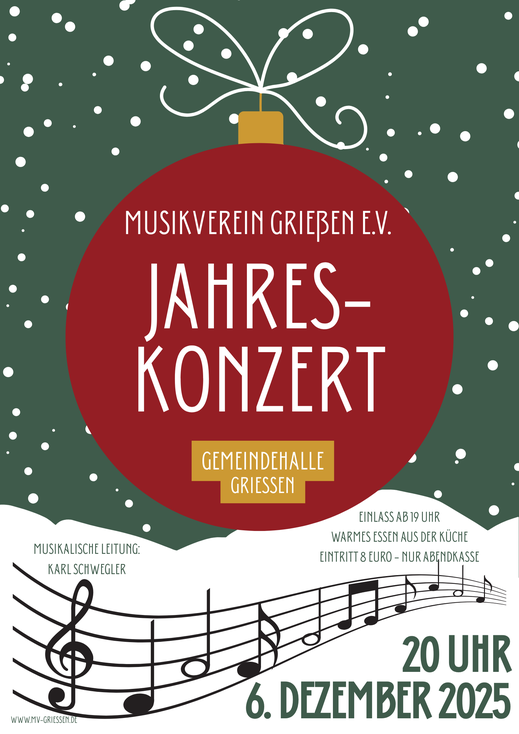 Am 7. Dezember 2024 um 20 Uhr findet unser diesjähriges Jahreskonzert in der Gemeindehalle in Grießen unter der Leitung von unserem Dirigenten Karl Schwegler statt.